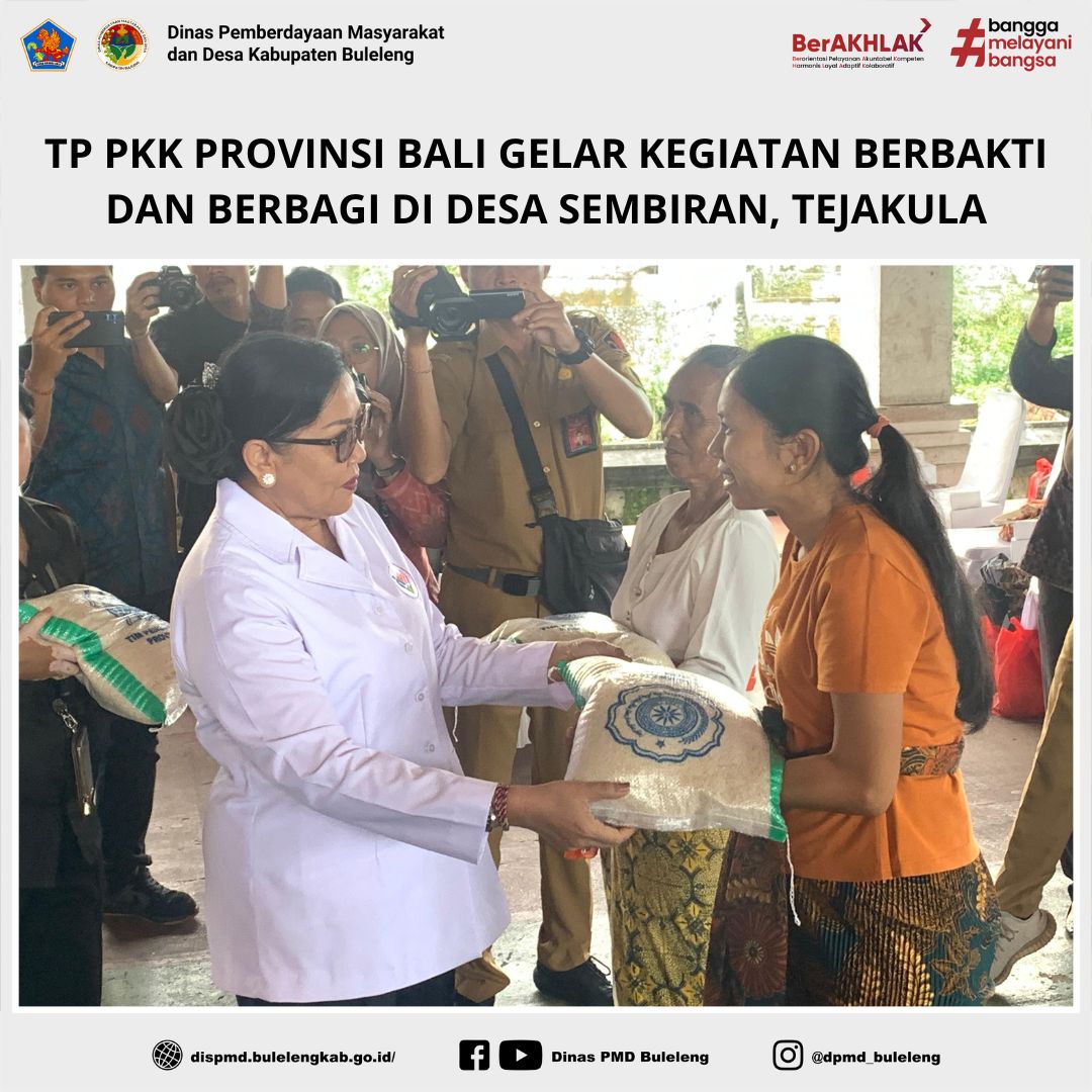 Buleleng, 14 April 2025 - Dalam rangka memperingati Hari Kesatuan Gerak (HKG) PKK ke-53, Ketua TP PKK Provinsi Bali sekaligus Ketua Tim Pembina Posyandu Provinsi Bali Ny. Putri Koster bersama Sekretaris I Tim Penggerak PPK Provinsi Bali Ny. Seniasih Giri Prasta melaksanakan kegiatan Berbakti dan Berbagi di Desa Sembiran, Kecamatan Tejakula pada Senin (14/4). Kegiatan ini dipusatkan di Gedung Serbaguna Desa Sembiran.